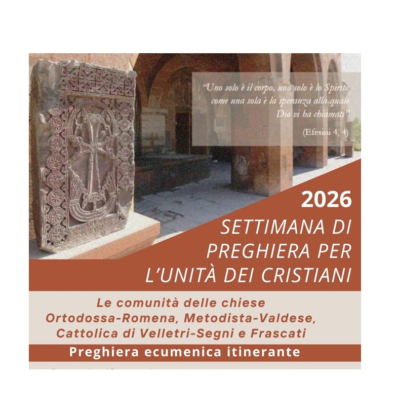 Come Commissione per l’Ecumenismo di Velletri-Segni e di Frascati, quest’anno, in vista della prossima Settimana di Preghiera 2026, insieme ai nostri fratelli e sorelle di diverse Chiese e comunità ecclesiali, proponiamo un viaggio a tappe nel territorio delle nostre diocesi, nella logica dello “scambio dei doni”, per approfondire nella preghiera e nel dialogo la comune vocazione all’unità e alla testimonianza del Vangelo.