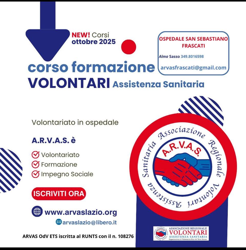 L’ARVAS (Associazione Regionale volontari Assistenza Sanitaria) è presente in 30 ospedali a Roma e nel Lazio ed è attiva con un gruppo di volontari anche nel territorio della diocesi di Frascati.