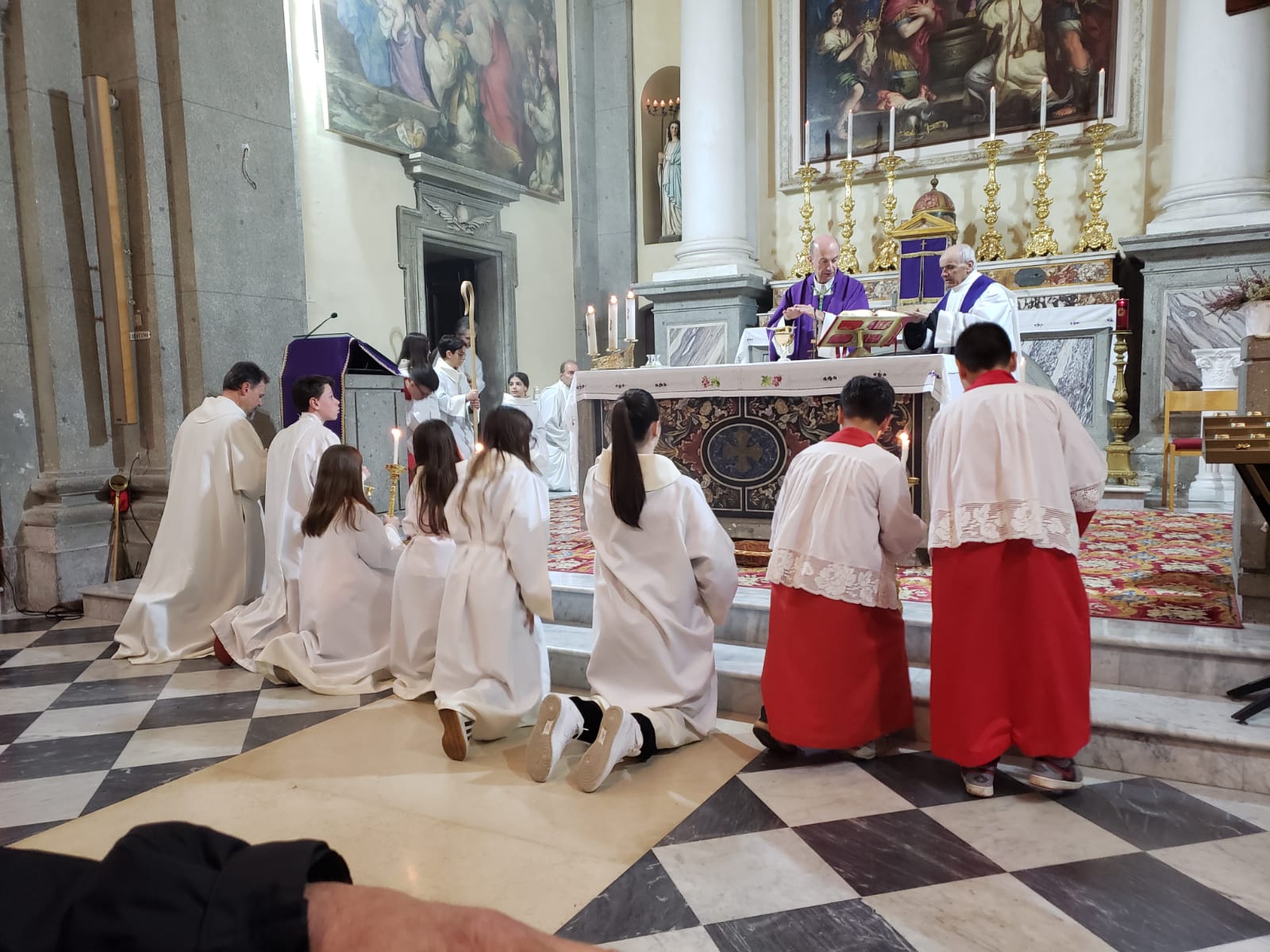 Dopo essere stati accolti dal Priore e dai frati e dalla comunità del Convento, i ministranti e le ostiarie, accompagnati dai loro animatori e dai genitori, hanno effettuato il servizio liturgico alla Santa Messa celebrata dal nostro vescovo  Stefano Russo.