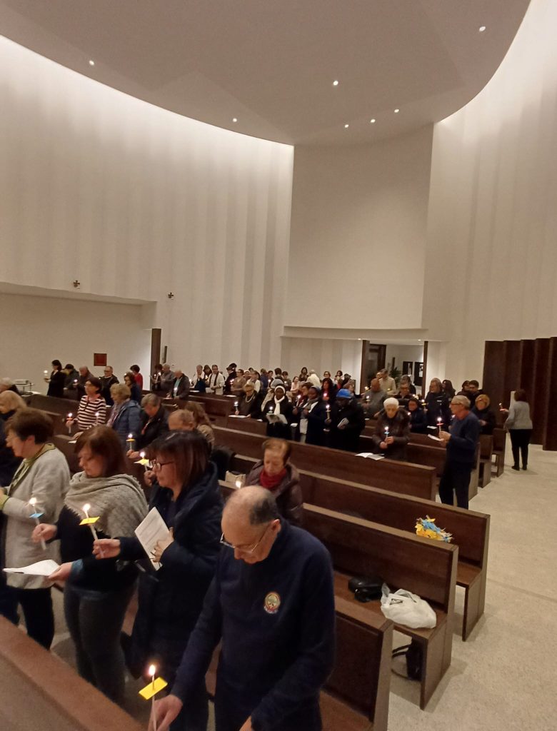 Terza tappa a Velletri, sabato 24, presso la chiesa di Regina Pacis. La scelta di questa chiesa ha avuto più motivi: il suo simbolismo architettonico – spiegato molto bene dal parroco don Angelo – richiama il senso della Luce, che filtra dall’alto, pur non avendo finestre visibili, e gli effetti creati dalle luci interne. Inoltre, la chiesa è situata di fronte al Centro valdese di Ecumene.
