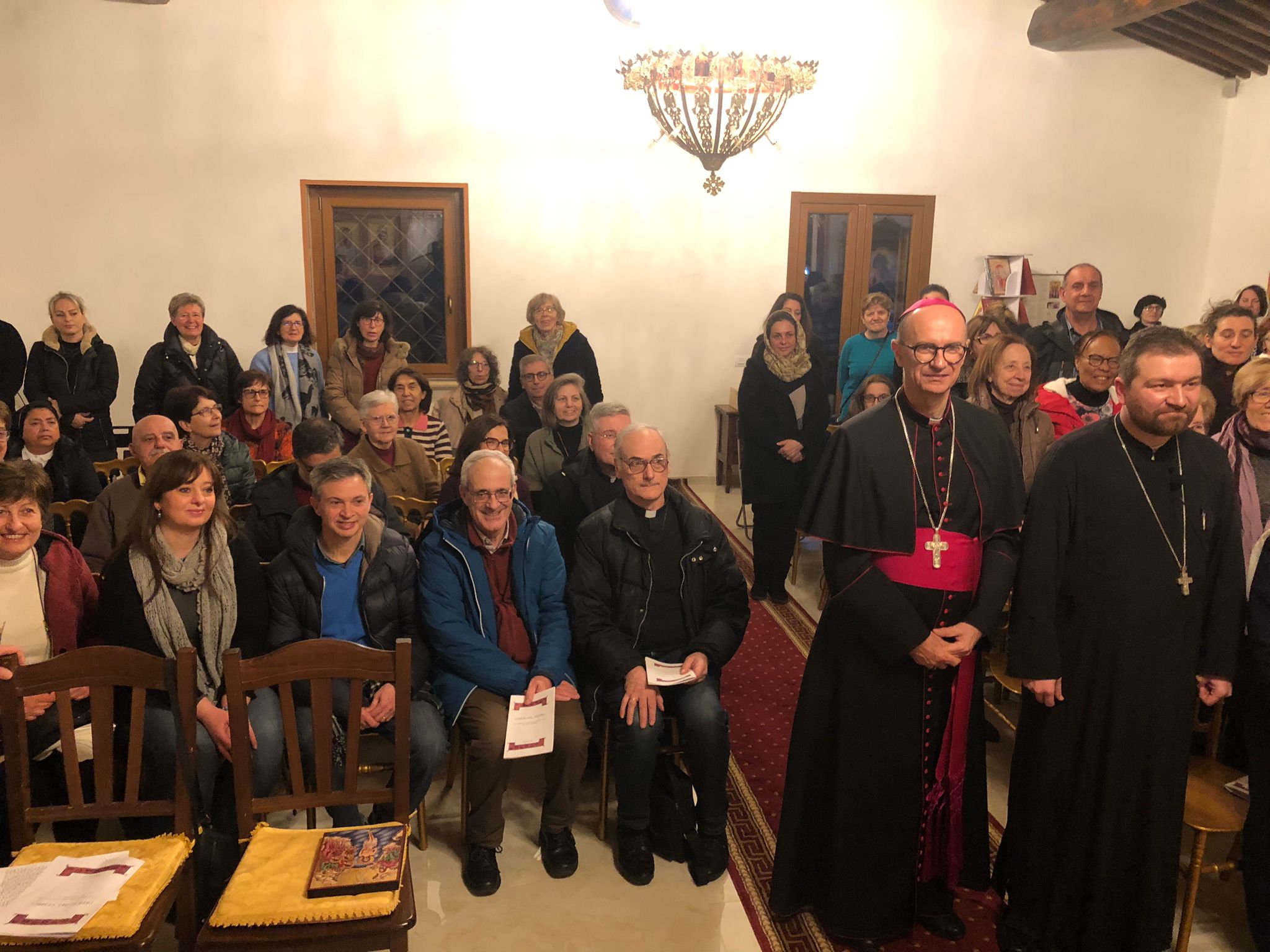 Il 18 gennaio con mons. Stefano Russo siamo stati ospitati nella chiesa romena ortodossa di Montecompatri-Pantano, accolti da padre Cristian Tuturoi, che ci ha portato nella preghiera dei ‘ vespri della luce’, in sintonia col tema di quest’anno. Un momento di grande raccoglimento e adorazione, seguito da alcune parole esplicative del significato di Cristo Luce secondo la sensibilità ortodossa. Il Vescovo ha ricevuto in dono un’icona, segno concreto della fraternità sincera e calorosa che si respirava nella chiesa. E poi, dialogo spontaneo. Abbiamo viaggiato nei significati delle icone e pitture sulle pareti della chiesa. Infine, l’agape, accolti con grande calore dalla comunità. ‘Impariamo gli uni dagli altri’ ha commentato padre Cristian salutandoci.