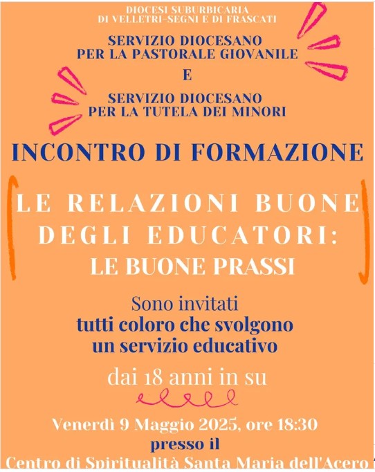 Il tema sarà in continuità con quello del 24 gennaio u.s., con una particolare attenzione alle “buone prassi” che le parrocchie, i gruppi e le istituzioni ecclesiali devono mettere in atto affinché le relazioni tra gli educatori e i minori (compresi gli adulti vulnerabili) siano sempre autentiche.